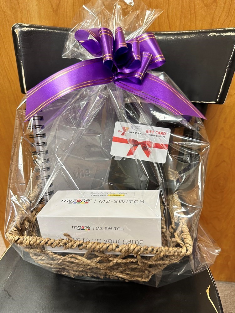 Yadkin Family YMCA Basket includes: $50 YMCA gift card MyZone MZ-Switch - Heart Rate Monitor Value $150 YMCA Tumbler YMCA Notepad