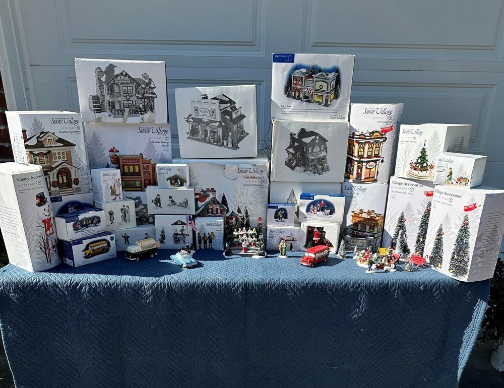 This is a FABULOUS collection of Department 56 Snow Village! There is also a storage bin full of trees, cars, buses and smaller boxed Village items (refer to pictures)! Includes: Santa's Wonderland House Rock Creek Mill House ALL Saints Church Snow Village Town Tree Center for the Arts Gracie's Dry Goods & General Store Smokey Mountain Retreat 56 Street Brewery Birch Run Ski Chalet Christmas at Grandma's Sophia's Pizzaria The Bike Pedaler Cedar Ridge School 2 sets of Christmas Lights Sisals Snowman Water Tower