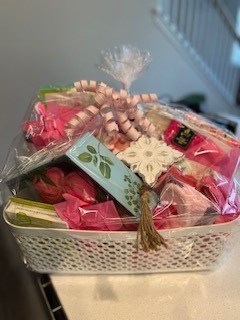 PINK FLOWER BLANKET SPA HEADBAND PINK TUMBLER 12 HYDRATING UNDER EYE PATCHES 6 ALOE & CUCUMBER SHEET MASKS 14 MAKEUP REMOVER TOWELS FLOWER NOTEPAD SET OF 3 PENS NORMAN LOVE WHITE CHOCOLATE BAR