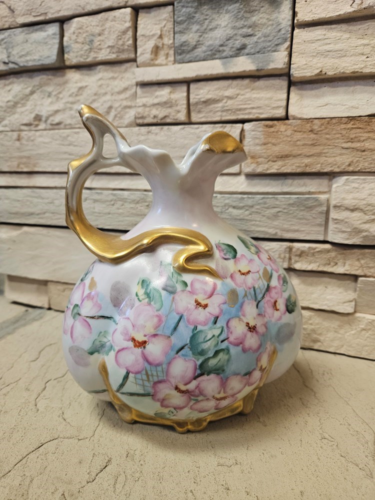 Antique Hand Painted Nippon Porcelain Carafe Pitcher Floral 8.5" Tall
