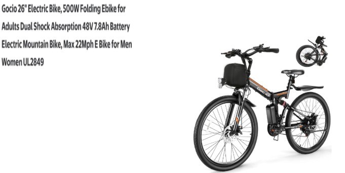 Brand new Gocio 26 inch electric bike, 500w folding e-bike for adults