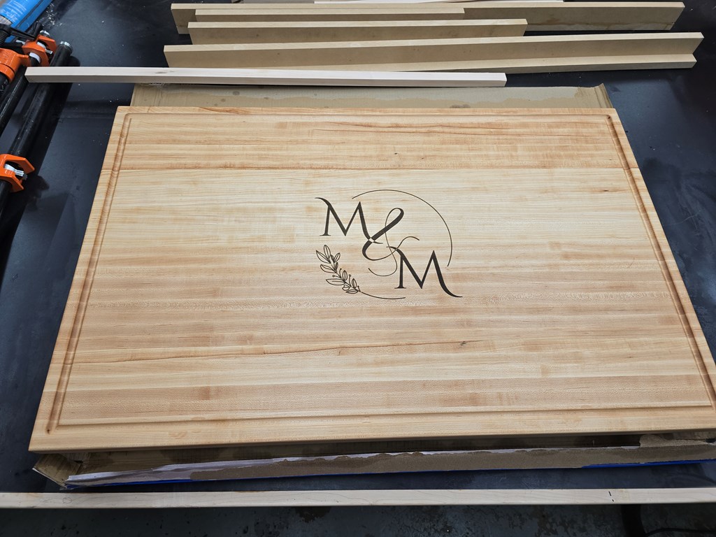 Beautiful handmade wood cutting board with initials engraved. Great for wedding or anniversary!